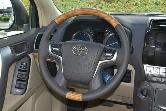 2022款丰田霸道4000 VX暗夜版桃木方向盘采用了两段式组合,上面大,小面小,握着舒适度极高。