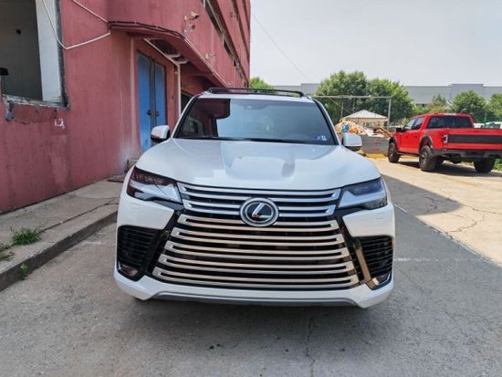 23款雷克萨斯LX (配置|询价)600在外观设计上霸气十足、尤其是前脸部分、采用了七条幅的镀铬装饰、比老款雷克萨斯570提升一大截。两侧配LED大灯造型别致、点亮后的效果有点儿耐克标的样子、银色的金属LOGO位于前进气格栅上使得整个前脸看起来年轻又大气。