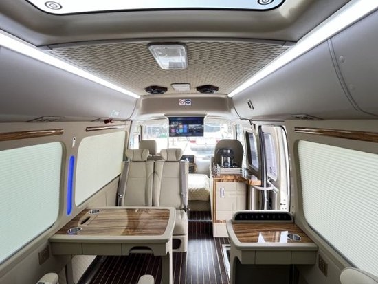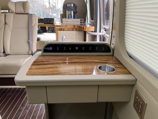 丰田考斯特商务车改装销售注重实用性的设计,作为一款商务车,我们在内饰上追求舒适和便捷。高档的办公桌,技能显示尊贵的身份提升商务车的档次,更能让我们在旅途中又舒适的办公环境。真皮航空座椅,360度可旋转的首长席,方便您在旅途过程的临时会议,对于乘车人员,我们提供舒宽敞的乘车环境,座椅舒适柔软,更可以增加可以自动加热,调控角度的装饰,为您减轻旅途的疲劳之感。我们以最贴心的设置,满足您的旅途所需。