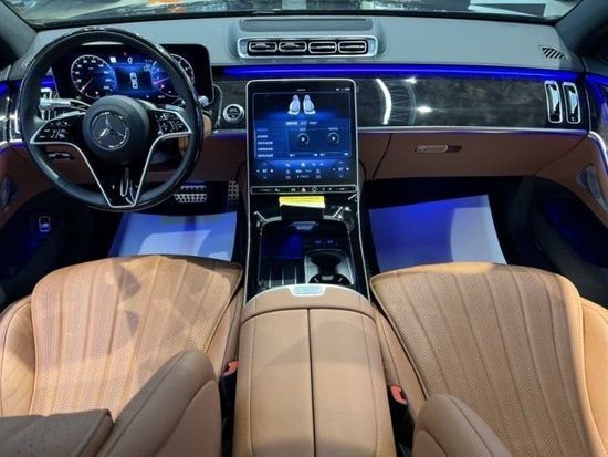 2023 款美规 奔驰 S500 四驱 长轴 AMG 黑/棕 现车 生产日期:23年2月份 选配: 棕色贝壳纹座椅、AMG运动包、暗夜包、21寸多幅轮毂、后轮4.5转向、桃木方向盘、方向盘加热、主动氛围灯、座椅按摩、黑色水晶中控台 标配: 3.0T 9速变速箱 直列6缸 涡轮增压 48V轻混发动机 ,435 匹马力 百公里 4.9秒 车身尺寸:长5.288m宽1.953m高1.504m ,前排座椅腰部支撑调节,电动后窗遮阳帘,12.3寸液晶仪表盘,12.8寸中控OLED触摸屏,主动氛围灯,门槛饰板发光,无钥匙进入,无痕门把 手,电吸门,防紫外线玻璃,全景天窗,实景导航,环影,无线充电,无线电话集成,苹果carplay,安卓汽车,前LED奔驰LOGO,柏林之声环绕3D音响,客舱空气平衡香氛系统,加强气囊系统(第二排气囊),主动刹 车系统,注意力集中系统,主动车道保持,碰撞预警系统,盲点系统,LED主动大灯系统,主动停车辅助,雷达测距,底盘升降