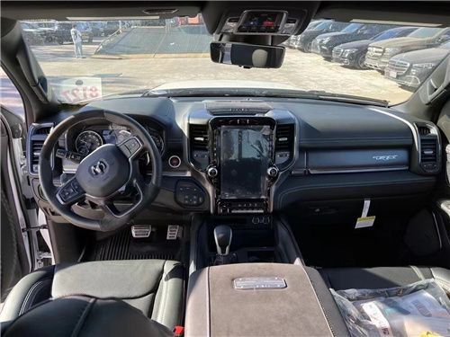2023款道奇霸王龙在内饰部分进一步强化了其高性能版本的形象,中控台和座椅随处可见的TRX标识便是最好的例证。同时,作为道奇家族的旗舰车型,新车还配备了12英寸竖置中控屏幕,除了支持蓝牙、导航和车载Wi-Fi等常见功能,还支持Apple CarPlay和Android Auto手机映射。