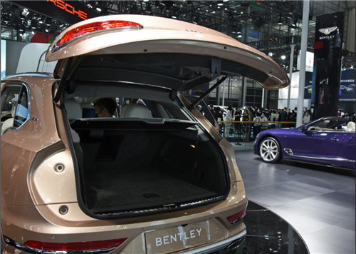 23款宾利添越前脸采用了很高端的设计,新车的进气格栅继续采用四方形的轮廓,上面采用了很精致的网格装饰,很显质感。新款宾利添越的灯组由两个横向的椭圆形的灯组组成,小椭圆的灯组上取消了大灯清洗的装饰,它的灯组的内部采用了很凌厉的菱形的LED发光体的布局,中间是一个矩阵式的发光元素,看上去很有质感。