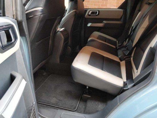 23款福特烈马Bronco车内采用硬朗的设计风格,中控台设计主次分明且有层次感,用料也厚实,多功能方向盘造型运动,中控屏幕采用内嵌式的设计增添了车内的时尚感,按键布局合理,档把设计精致,座椅宽大厚实,空间宽敞,实用性强。