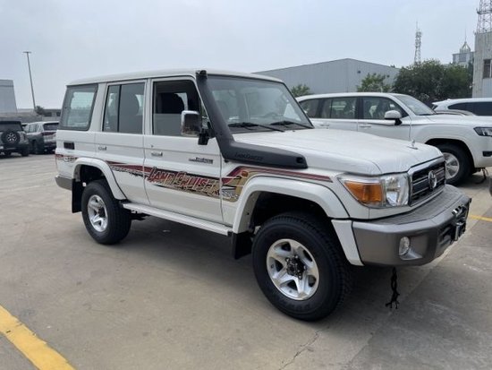 2023款丰田LC76 4.0汽油发动机,5速手动档,16寸合金轮毂,后差速锁,ABS,VSC,BA,EBD,HAC,ATRC,2气囊,脚踏板,数码钟,5座,布座椅,空调带加热,电动天线,电动门锁、车窗,蓝牙,AUX,USB,绞盘,车窗除雾,脚垫,轴头离合,前后雾灯,轮眉,彩条,涉水器,胎压监测