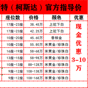 丰田考斯特/一汽丰田柯斯达 (配置|询价)销售改装定制 企业VIP版:7座8座9座10座, 企业至尊版:11座12座13座14座15座, 政府采购版:16座17座18座19座20座21座22座23座。