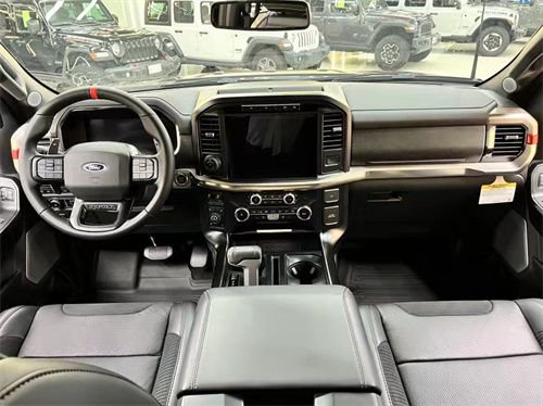 全新23款福特F150猛禽内饰采用独特的中控台和门饰板面漆和真皮包裹的方向盘。中控台部分辅以银色饰板装饰,六指针仪表盘的设计有些后工业时代的复古风格。采用带电冷热功能的可记忆式皮革座椅,头枕四向可调,搭配铝饰条和黑色钢琴烤漆内饰可电动升降的后窗带隔板和电热除霜功能。