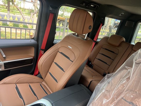 23款奔驰G63豪华精致的真皮包覆提供了足够的舒适性和支撑性,通风和加热功能让乘客免受高温和寒冷的煎熬。中控台多处均采用碳纤维材料覆盖,带彩色TFT显示屏的AMG仪表盘、AMG主菜单和单独的挡位显 示器以及采用白色照明的AMG门槛。名贵的选材及精湛的内装令人拍案叫绝。