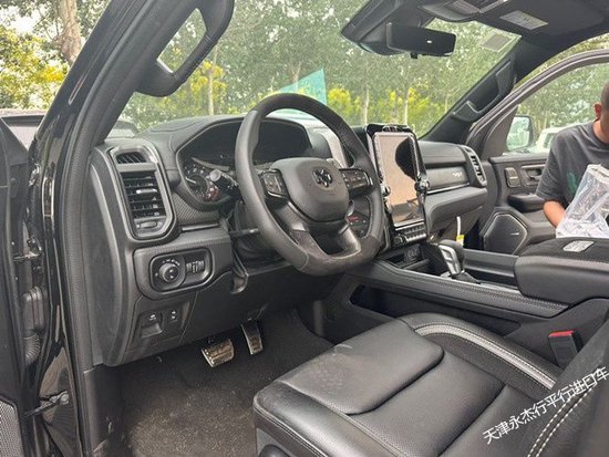 公羊1500 23款6.2TRX霸王龙外观方面,新车传承了道奇RAM家族高大威猛的造型设计,销售热线:18920429090张经理 同微信13810502333 田经理同微信同时细节部分融入了更多高性能元素,包括经过黑化处理的前格栅,引擎盖两侧的黑色进气口以及为了容纳巨大的机械增压器而设计的通风口等等。此外,新车还配备了视觉冲击力更强的黑色轮眉和外露式的拖车钩看上去十分霸气。