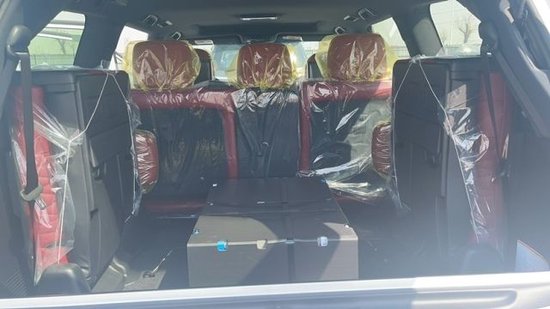 配置:雷达测距、抬头显示、换挡拨片、铝制行李架、限量包(前后大包围、黑色大中网、钢制油门/刹车脚踏板、车门迎宾灯)、S限量花纹脚垫、后包围镀铬、镀铬尾喉、外置拖车钩、138升双油箱、遥控启动、车身防擦条、副驾驶灭火器、流水转向灯、金属漆、21轮、冰箱、天窗、智能卡、电眼、环影、后娱、底盘升降、前座椅通风加热(真皮)、导航、多功能桃木真皮方向盘、桃木内饰、航空照明脚踏、LED 氙灯、大灯清洗、迎宾灯、四区空调、三排电动、电尾门、ACC自适应巡航、后座椅通风、车道保持、并道辅助、二排遮阳帘、马克莱文森音响、后牌照盖带LED灯。黑耀套件(中网,雾灯,大灯,流水转向灯,21轮,门把手,行李架,防擦条熏