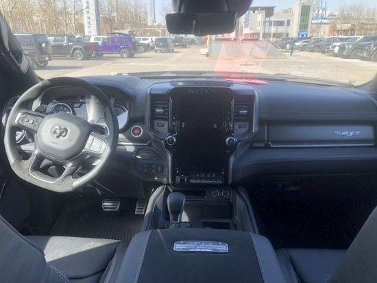 22款道奇公羊霸王龙在内饰部分进一步强化了其高性能版本的形象,中控台和座椅随处可见的TRX标识便是最好的例证。