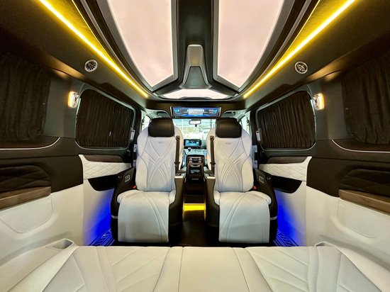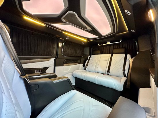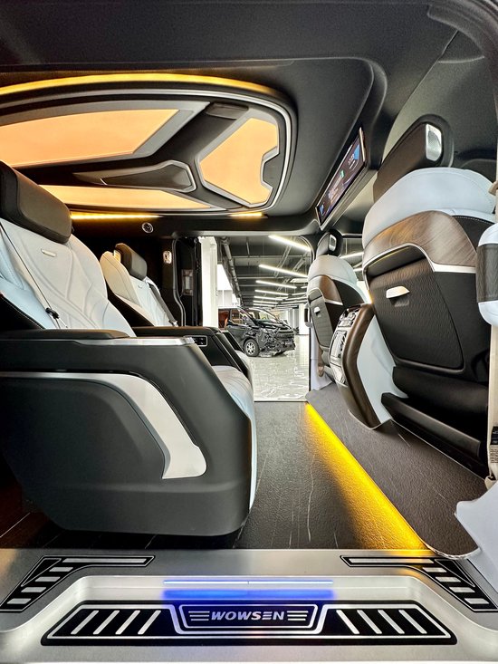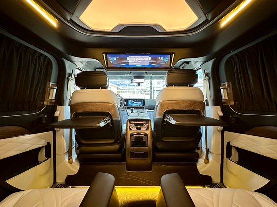 第3排电动调节,配有无线充电,它既可以形成一张豪华双人大床。也可以由两个独立的座椅所组成,两个款式两种布局,可满足不同用车的需求。双侧电动滑门,可选装电动后尾门。同时,第二排座椅与第三排座椅旋转,形成对立的卡座,从而形成商业模式;即使用于家庭旅行,也可以增加儿童的娱乐空间。