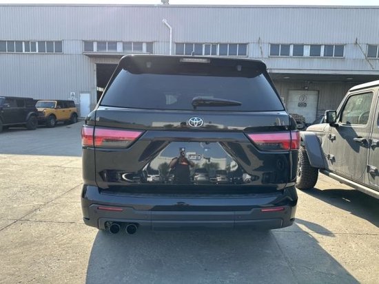 2023款丰田红杉车身侧面造型十分庞大车窗外侧进行了熏黑设计,后车窗及小窗部分都采用了隐私玻璃。熏黑的前后轮眉上侧有着大面积的内凹设计造型十分硬气。大尺寸的熏黑轮毂造型与车型气质相符合。
