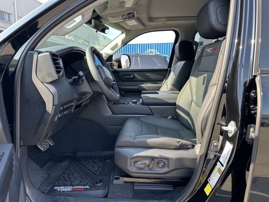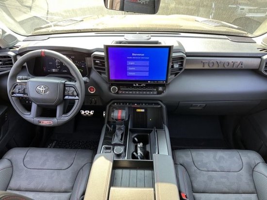 在内饰方面,全新丰田红杉造型延续了外观的硬派风格。中控应用了大面积软料材质进行包裹,触感和质感十分出众。四幅式的多功能方向盘前端为全液晶仪表盘,中控配备有大尺寸的悬浮式中控大屏查看十分便捷。空调出风口造型显得别具张力,副驾驶前端的饰板加入了丰田英文字样。