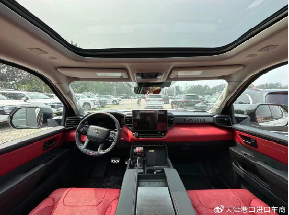 2023款丰田坦途3.5T混动顶点版前脸方面,新车多边形进气格栅内采用了六边形的网格设计,外侧有着镀铬饰条进行包围。机盖的线条充满肌肉感。格栅两端部分的倒L型前LED大灯组充满张力。前包围很具层次感,有着不少的镂空设计。销售电话:13821856177张经理