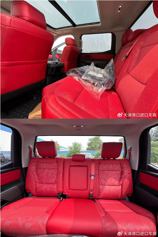23款丰田坦途车内乘坐、后排座椅宽大,足以满足身高195cm的贵宾,第二排座椅可以完全折叠收起,为乘客提供更宽敞的腿部空间,已经达到了中大型车的水平,完全可以满足舒适乘坐的需求,部分特殊的装载给您的路途更添信心。