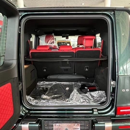 23款奔驰G63内饰方面保留了新G500的整体设计,除配色差异外。新车还换装了全新造型的平底式AMG运动方向盘,其两侧配以打孔皮质包裹,下部镀铬装饰的造型也与新G500明显不同看上去十分战斗。此外,全液晶仪表盘中控大屏的双12.3英寸屏幕设计在新车上也没有缺席营造出了浓郁的科技感。