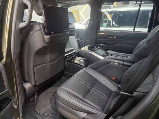 23款LX600新车的前排座椅倾斜角度可以调节至 48度,后排座椅显示屏可以向下折叠以提供前方视野,其最大腿部空间为 1.100 毫米/43 英寸。新车的后排座椅还采用 Ultra Luxury 独有的弧形头枕、座椅靠背和靠垫,可以地对头部、臀部和下半身进行包裹。
