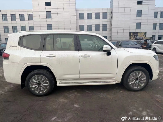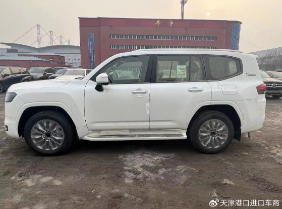 22款丰田酷路泽LC300车身侧面的设计较为简洁流畅配备大尺寸银色轮圈、车窗外缘配有镀铬饰条整体依旧呈现了很强的气场。