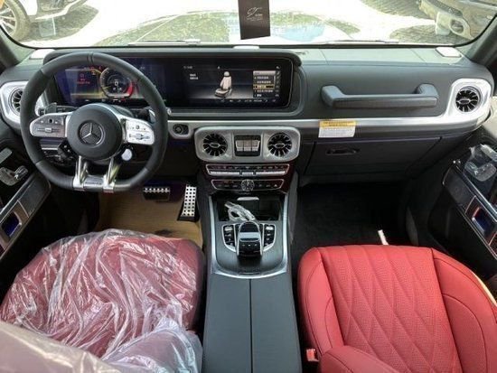2023款奔驰G63档次、质感和科技配置都明显提升,采用了奔驰最新的双屏幕式设计,全液晶仪表盘和中控台屏幕都达到12.3英寸,同时内饰质感和工艺都有了很大的进步。中控涡扇式空调出风口也颇具设计感,车内的高档皮革内饰以及标有V12钻石图案设计的座椅、车门面板和脚垫,无不彰显着车主的尊贵身份。