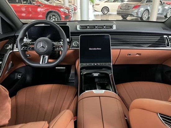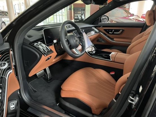奔驰S450升级版中控台采用大量高品质实木面板精巧的中央送风口和指针式时钟完美镶嵌,其中内饰中最大面积的电子装备就是12.3英寸的两块高分辨率屏幕了。车内实木与真皮相间包裹所带来的视觉效果和手感都饱满坚挺。方向盘和中控台等处用桃木色加以装饰,透露出浓重的商业气氛。