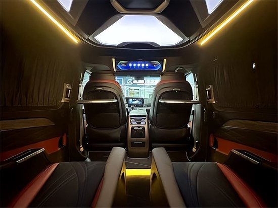 车子在音响方面也是做了大力的改造,用的是影院级别VVcar7.1声道的音响并带有GPS处理器,光是扬声器的数量就有8个,坐在车内声学感受可以得到很大程度的提升。同时无线网络电视机在配合多色的幻彩氛围灯,以及独家定制的天幕顶灯,整体单从眼睛可触的方面来讲,他都会有着非常舒心的感受。这是一款视觉听觉都能够得到很好体验的商务车。