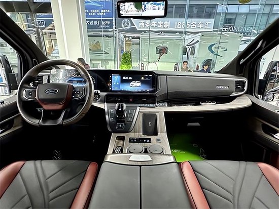 对于一款商务车来说,主打的就是豪华型和舒适性,福特虽然车身尺寸有限,但是车型方正,车头短,所以内部空间相对来说是很大的,第三排也不拥挤。这款车的第三排是三联排的沙发床,可以180度的进行平躺,最后一排可以乘坐三人。日常出行想在车内休息一下,还是很惬意的一件事。