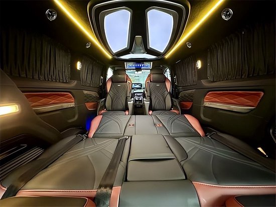 驾驶舱采用NAPPA真皮的深层包覆,体现了wowsen沃森威尔的细节、做工和质量,营造出一种高级的内舱氛围。NAPPA头层牛皮+碳纤维双拼接,仪表板采用法国双缝线设计。中央扶手配有制冷冰箱,支持零下12度至10度的温度调节。夏天可以随时喝冷饮,有些食物可以暂时冷藏。都是私人双层窗帘。视频和音频系统VVCAR9。声道立体环绕声,营造身临其境的视听环境。