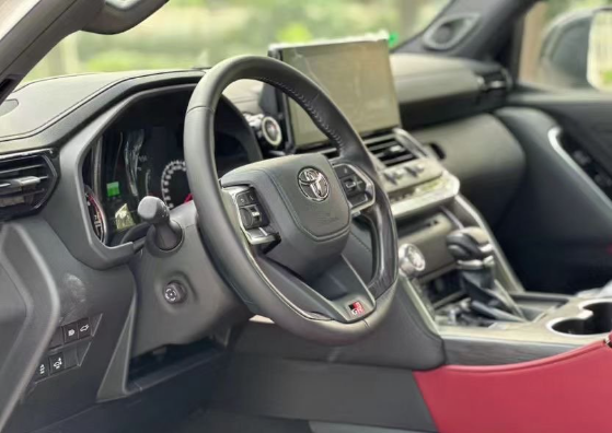 全新酷路泽LC300的内饰中控,也是采用了全新的设计风格,悬浮的中控屏幕两侧带有实体按键质感一般,下方则是运用了倾斜的设计,并且整体的风格显得很有层次感,方向盘的设计略带立体感,带有银色的点缀,同时座椅也是采用了绒布的设计显得很实用,车内空间的表现也是非常的宽敞。