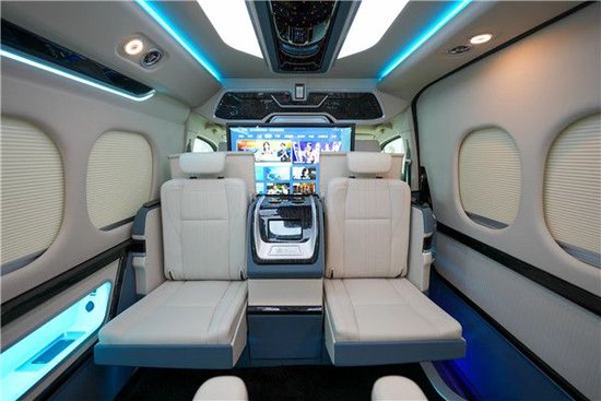 丰田(进口海狮)驾驶舱升级9寸导航,搭配360度全车影像,红木方向盘,升级了原厂桃木纹内饰改为进口红木,豪华感顿显。主副驾驶座椅真皮包覆,主副驾驶座椅四向电动调节带通风加热,主副驾驶中间升级车载扶手冰箱。主副驾驶后面,加装了24寸高清液晶电视娱乐系统,全车升级阿尔派音响系统。