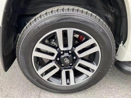 超霸”。20英寸的大轮毂,配备的是锻造式的轮毂,非常的坚实,碰到石头几乎是没有问题的,匹配的是越野式的轮胎,可以适应各种路况,可以提供很好的摩擦力。4Runner整个车身造型看起来较为方正,而方正的轮框设计看起来也更加硬派,宽大的D柱更是增加了几分硬汉的味道,不过还是那句话,这个汉子 相比普拉多真的要细腻许多,车身尺寸方面,这辆车的长宽高分别为4823*1925*1885mm,轴距2790mm,