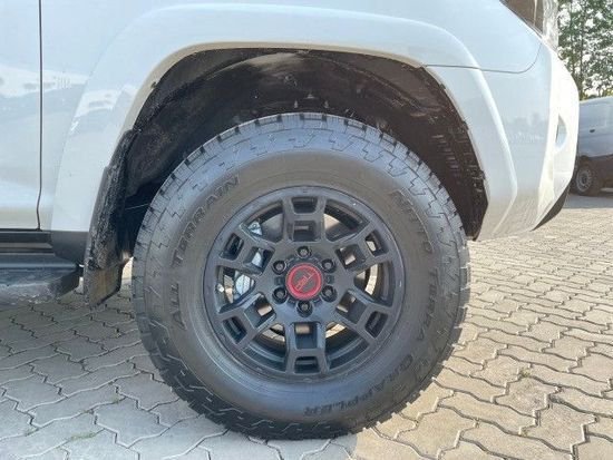2023款丰田超霸4.0张开大嘴般的进气格栅让超霸非常有力量感,格栅下还有一个粗壮的车身同色下包围护板,整体看上去非常有野性。大灯与格栅紧紧相连,大灯看上去非常凶狠霸气,不愧是车如其名“超霸”。20英寸的大轮毂,配备的是锻造式的轮毂,非常的坚实,碰到石头几乎是没有问题的,匹配的是越野式的轮胎,可以适应各种路况,可以提供很好的摩擦力。