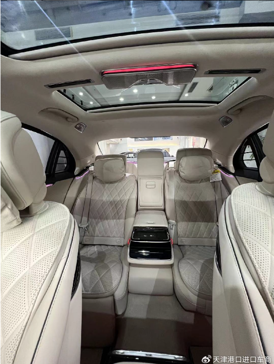全新奔驰S580顶配的第二排采用了两个独立的豪华座椅,中间配备了独立的多媒体系统,新车的后排配备了无线充电、冰箱,后方的地台上采用了钢琴烤漆的面板。新车的后排座椅非常豪华,上面采用了菱形的纹路,门板上也采用了非常精致的设计。