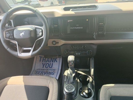 23款福特烈马Bronco车内采用硬朗的设计风格,中控台设计主次分明且有层次感,用料也厚实,多功能方向盘造型运动,中控屏幕采用内嵌式的设计增添了车内的时尚感,按键布局合理,档把设计精致,座椅宽大厚实,空间宽敞,实用性强。