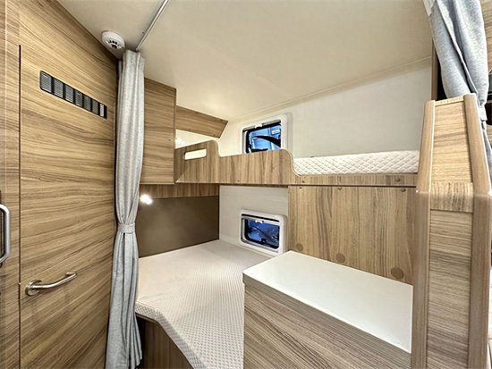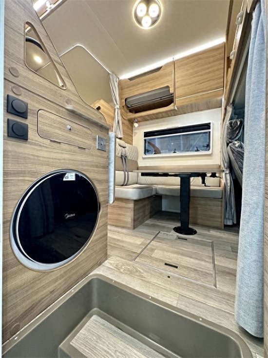 全车固定床位均设计隐私帘,旅居生活也要过得体面。在追求性价比的同时,旌航房车也追求更细节的设计处理,用心打造安全舒适的移动小家。