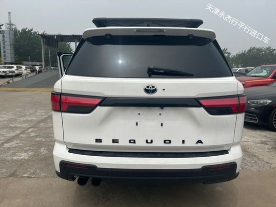 2023款丰田红杉3.5T车尾方面,造型圆润饱满,设计简洁,上方设计了扰流板,尾灯为扁平式设计,内部结构清晰可见,辨识度很高。后包围则采用了黑色饰板装饰,搭配镀铬板材,凸显力量感。整体看非常硬朗。