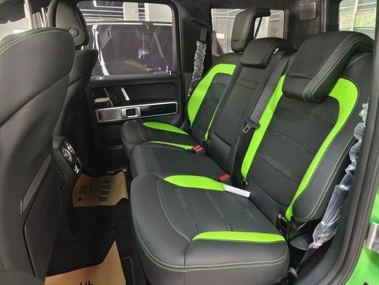 奔驰G63豪华精致的真皮包覆提供了足够的舒适性和支撑性,通风和加热功能让乘客免受高温和寒冷的煎熬。中控台多处均采用碳纤维材料覆盖,带彩色TFT显示屏的AMG仪表盘、AMG主菜单和单独的挡位显示器以及采用白色照明的AMG门槛。名贵的选材及精湛的内装令人拍案叫绝。