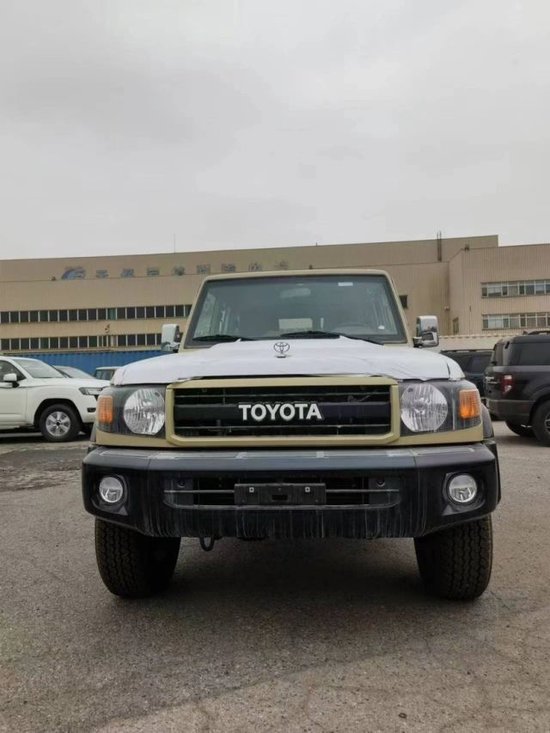 23款丰田LC76 汽油4.0 白/棕、沙漠黄/棕 车架号多台 国6 5速手动变速箱 130升油箱 分时四驱 前差速器 后差速锁 16英寸合金车265/70R16 刹车:前盘后鼓 前悬螺旋弹簧 后悬板式弹簧 ABS+VSC+BA+EBD+HAC+ATRC 2气囊 彩色保险杠,黄车黑杠)高位刹车灯 、镀铬外后视镜带电动调节 、侧踏板 、数字时钟 5座 、空调 、熏黑大灯、熏黑轮毂、电动门锁 、电动车窗 、收音机 CD 、蓝牙 、2个扬声器 、胎压监测 、USB快速充电 、前雾灯 、后雾灯 、手套箱带钥匙 、日行灯、徽章、脚垫、黑色轮眉、散热格栅、彩条、桃木方向盘、桃木档把、桃木内饰、真皮座椅