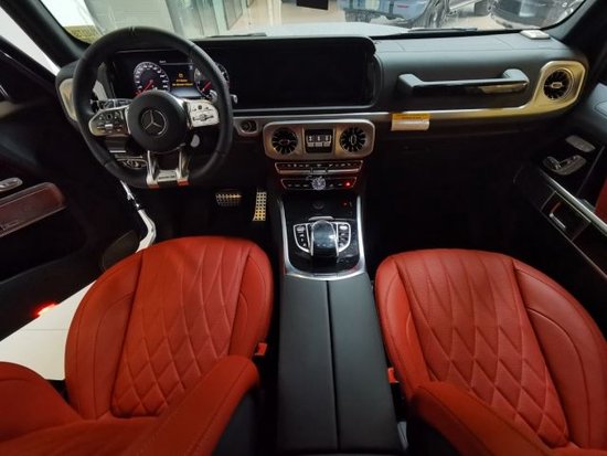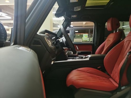 23款奔驰G63车内用料以真皮为主,部分碳纤维及铝合金装饰件。如今的G级 (配置|询价)是纯粹的豪华车了,跟那些纯粹越野车不一样的,车内配置很高,像这个座椅除了各种电动调节功能外,还带有腰托、腿托以及加热、通风、记忆功能。