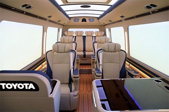 丰田考斯特整车的一体式多媒体影视系统,全车构建10.2多声道环绕音响系统,并且搭载了全新欧美版星光顶,带来了不同寻常的舒适体验。满满丰田考斯特商务房车其内部装配了舒适的豪华转角沙发,桃木会议桌、桃木多功能置物架、通讯设备、新型彩灯以及豪华地毯等物品。新车有众多广受欢迎的特点,赏心悦目的内饰正是其中的一项。
