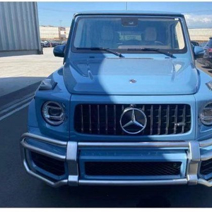 22款奔驰G63方正规整的车身线条,非常干练,笔直的黑色腰线、黑色的后视镜,和洁白的车身形成撞色的设计,可谓经久不衰的时尚,这款车配备了22寸的AMG黑色轮毂,内配红色卡钳,高耸的轮眉也要比老 款更加宽一些,和旁边的不锈钢脚踏板也更显一体化,越野性能展露无遗。