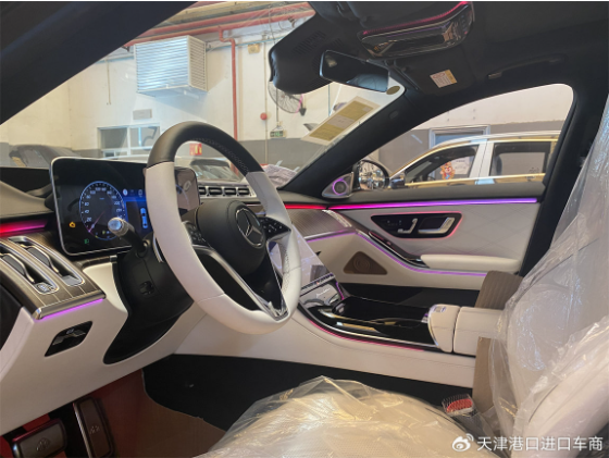 内饰配置:迈巴赫S680的内饰配置也是令人惊艳的。驾驶舱采用了12.3英寸全液晶数字仪表和12.8英寸中控屏幕,同时配备了迈巴赫独特的头等舱座椅,为驾乘人员提供了最为舒适的座椅体验。此外,内饰还采用了大量的皮革和镀铬材质,呈现出一种高贵、典雅的氛围。