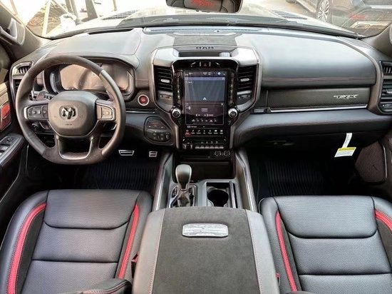 新车在内饰部分进一步强化了其高性能版本的形象,中控台和座椅随处可见的TRX标识便是最好的例证。同时,作为道奇家族的旗舰车型,新车还配备了12英寸竖置中控屏幕,除了支持蓝牙、导航和车载Wi-Fi等常见功能,还支持Apple CarPlay和Android Auto手机映射。