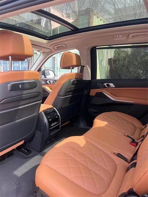 全新一代2023款宝马X7做工用料上采用了大量真皮以及金属木纹材料进行装饰,凸显出内在的奢华感。内饰方面,中控台部分还使用了大量的木饰,真皮座椅纹理是经典高贵的菱形纹理, 无论是前排还是后排,包裹性都非常好,坐上去也会觉得非常舒适,车内很多地方都有X7的标志