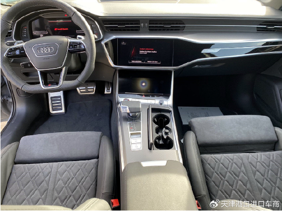内饰延续了奥迪家族式设计,三块大尺寸液晶屏营造出浓郁的科技感。作为一辆旗舰车型,RS6 Avant在内饰用料方面自然不会有太多犹豫,中控台和门板都覆盖着大面积真皮材质,为凸显出RS运动旅行车身份,还加入了许多碳纤维装饰面板,兼顾豪华感的同时也不失科技感。