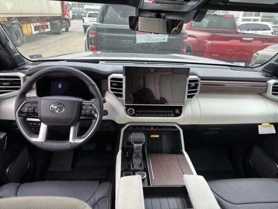 2023最新款全新丰田红杉车内采用了大量软质材料包裹,部分区域还加入了缝线处理,显得档次感和质感十足。 采用四辐式多功能方向盘,并保留了很多物理按键,足以满足驾驶时想要的操控感,12.3英寸的全液晶仪表盘和14英寸的中控屏,另外顶配Capstone车型的内饰将会采用更加豪华的黑白配色方案,并搭配胡桃木装饰面板。