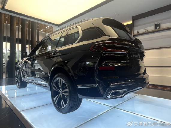 宝马X7车身侧面的造型基本得以延续,轮眉位置的气流通道连同类似于“高尔夫球杆”的装饰条点缀了修长的车身。宝马集团还表示,首次在BMW量产车型上提供23英寸铝合金轮辋,无疑将进一步提升车辆的“气场”。