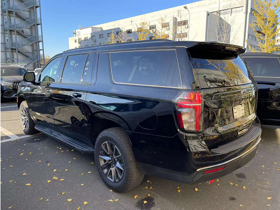 22款雪佛兰萨博班外观造型设计还是以方正风格为主,车头横纹镀铬进气格栅气场不输凯迪拉克凯雷德 ,两侧更狭长的LED矩阵大灯光源很犀利,搭配小獠牙日行灯装饰,车头侵略感比较强。车身侧面属于很明显的全尺寸SUV身材,新一代产品比老款车型轴距增加了105mm,C柱后方超大面积侧窗与凯雷德如出一辙,搭配隔音隐私玻璃和平坦的车顶行李架,沉稳的气场很突出。