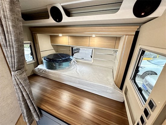 尾横床可拓展,拓展后尺寸为2210x1360mm,侧面阅读灯、电源插座、USB接口、车窗配备齐全,营造舒适的睡眠空间;顶部还有一排吊柜,提供充足的储物空间。水电方面配置了3kw(150A)的充逆变一体机,840w太阳能电池板,800Ah房车专用锂电池,可以外接220V市电,220L的超大净水箱,可以满足4人两天的使用需求!
