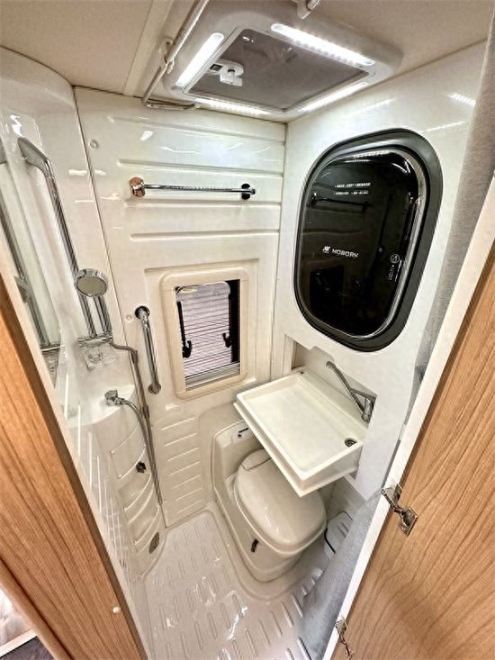卫生间的门配备全身镜,卫生间吸塑一体,防水防霉容易打理。卫生间配备赛特福德旋转马桶,水槽,莫博3公升洗衣机。洗衣机是洗烘一体,旅行途中十分方便。还有灯带换气扇,配备晾衣杆,镜子,淋浴花洒。硬件设施还是比较全的。好了本款23款宇通C535旗舰版双拓展方车小峰哥就同大家介绍到这里。阅览世间美好,带您跨越山河,品味人间烟火,给您一个移动的家 -我是小峰哥