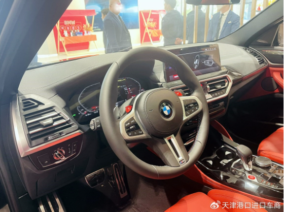 内饰上,宝马X4M 雷霆版依旧采用了大量的M系列的套件,包括M系列全液晶仪表盘、M系列真皮多功能方向盘、M系列挡把、红色的发动机启动按钮以及碳纤维饰条等M系列车型专属配置。都让这款车和常规版本区别开来,另外例如电动头枕调节和可发光M标志的M运动座椅也是它的标配。这款车还搭载12.3英寸的控制显示触摸屏,支持语音控制功能以及可选的BMW手势控制、在线数字娱乐等功能。科技感和运动感更好的融合在一起!